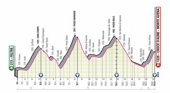 Alla vigilia dell'arrivo i ciclisti affronteranno una tappa di montagna tra Feltre e Monte Avena nelle Dolimiti con ben tre colli da salire.