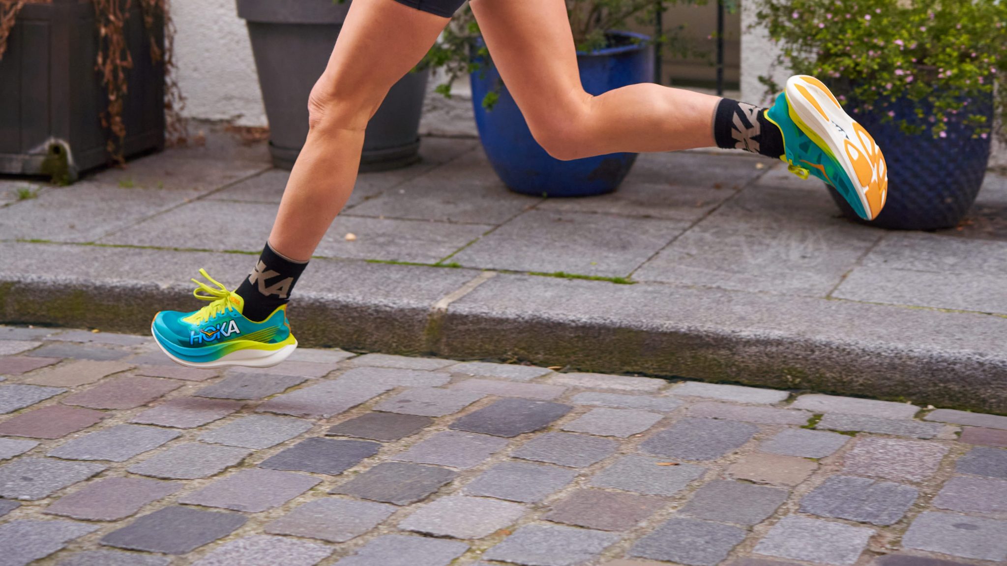 Test delle Hoka Rocket X2 - femme qui court avec les Hoka Rocket X2