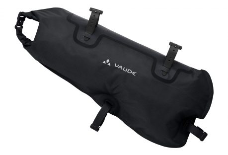 Nel bikepacking, è spesso consigliabile posizionare il peso più pesante sulla parte anteriore della bici. La borsa da manubrio è posizionata sotto il manubrio. Varia tra 5L e 15 L. Puoi posizionare la tenda lì.