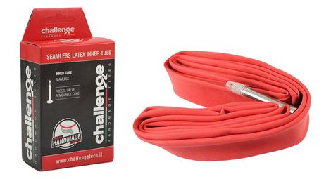 Le camere d aria challenge latex sono le uniche camere d aria in lattice monopezzo senza cuciture sul mercato che offrono una guida fluida e bilanciata senza le grinze e le asperita che si trovano sulle altre camere d aria le camere d aria in lattice sono piu leggere piu sottili e piu flessibili delle camere d aria in butile aumentando il comfort riducendo la resistenza al rotolamento e aiutando a prevenire le forature si prega di notare che gli steli delle valvole in alluminio da 48 mm e 60 mm sono compatibili con le prolunghe per valvole presta challenge che potrebbero essere necessarie per l uso con cerchi ad alto profilo dettagli costruzione senza cuciture valvola presta 60 mm corpo valvola rimovibile