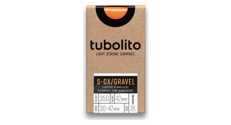 La leggera s tubo cx gravel all da 35 grammi e la camera di scorta ideale per tutti i pneumatici 700c e 650b da 30 a 47 mm di larghezza grazie alle sue dimensioni molto ridotte tuttavia non e solo un salvatore in caso di necessita ma puo essere perfettamente utilizzato su base giornaliera in quanto e ancora robusto come i tubi di gomma standard gli avanzi di liquidi tubeless non gli fanno alcun danno data la sua bassa resistenza al rotolamento puo anche essere il vantaggio decisivo nelle competizioni dettagli tubo di ricambio perfetto per cx gravel puo essere usata anche per le corse quotidiane i tubi cx gravel piu leggeri al mondo puo essere usata con pneumatici 700c e 650b compatibile solo con i freni a disco stessa resistenza di un tubo standard bassa resistenza al rotolamento tubo di ricambio perfetto per i setup tubeless valvola presta 42 mm peso 36 g