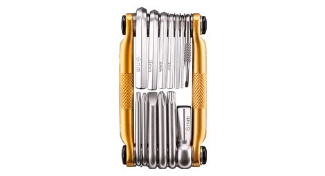 Crankbrothers di innovare uno strumento multi alluminio y forma molto ben rifinito e molto compatto che ha 12 funzioni il suo design sottile consente una facile memorizzazione in una borsa o in tasca della vostra maglia lo strumento comprende 2 chiavi torx t10 e t25 8 9 10 velocita catena di deriva 1 cacciavite 1 philipps cacciavite a stella 0 1 2 3 tiraraggi 7 hex 2 2 5 3 4 5 6 8 kit di riparazione del tubo vano portaoggetti utensili in acciaio peso 166g