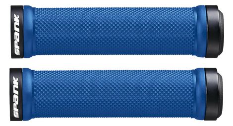 Le manopole spank spoon sono progettate per un utilizzo all mountain trail freeride e bike grazie ad un design sottile e discreto con motivo di grip micro diamante dettagli blocco dell 39 impugnatura gomma a doppia densita sistema di serraggio lock on in alluminio lunghezza 130 mm peso 110 g coppia venduto con estremita della barra nera riferimento sp grp 0008 blue