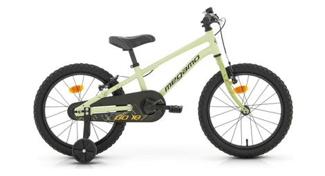Megamo 18 go e una bicicletta per bambini in alluminio leggera ideale per l apprendimento grazie alla trasmissione a velocita singola e agli pneumatici all terrain progettata per i giovani ciclisti offre semplicita sicurezza e robustezza su strade e sentieri dettagli telaio in alluminio forcella conica unicrown freni a disco anteriori e posteriori velocita singola 18t denti guarnitura 1 x 31t denti lunghezza pedivella 114 mm ruote alluminio pneumatici mtb 18 x 1 95 fuoristrada stabilizzatori per bambini da 5 a 7 anni anno 2026