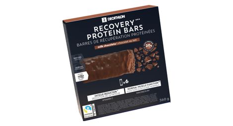 Barretta ricca di proteine e carboidrati da consumare entro 30 minuti dall allenamento si puo integrare con una bevanda di recupero a seconda dell intensita della sessione il nostro team di ingegneri nutrizionisti ha progettato questa barretta proteica per il recupero sportivo dopo un attivita moderata o intensa benefici del prodotto concentrazione di proteine ogni barretta fornisce 20 grammi di proteine e 25 27 grammi di carboidrati contenuto energetico fornisce tra 235 e 260 kcal per barretta a seconda del gusto favorisce la normale funzione muscolare il magnesio contribuisce alla normale funzione muscolare riduce la stanchezza la vitamina c contribuisce a ridurre la stanchezza anti ossidante la vitamina c e lo zinco aiutano a proteggere le cellule dallo stress ossidativo valori nutrizionali valori nutrizionali 100g 60g 1 barretta valore energetico 1670kj 396 kcal 1003 kj 238 kcal grassi 9 5g 5 7g di cui acidi grassi saturi 4 8g 2 9g carboidrati 42g 23g di cui zuccheri 34g 20g fibre 4 2g 2 5g proteine 33g 20g sale 0 33g 0 20g vitamina c 20mg 25 12mg 15 magnesio 93 8mg 25 56 3 mg 15 vitamina b9 50 g 25 30 g 15 assunzione giornaliera di riferimento composizione ingredienti sciroppo di grano proteine del latte 26 1 cioccolato al latte 21 zucchero burro di cacao latte in polvere pasta di cacao siero di latte in polvere latte emulsionante lecitina soia estratto di vaniglia proteine di pisello 6 9 fibra solubile ottenuta dalla barbabietola succo di pera concentrato proteine di frumento 3 9 farina di frumento aromi naturali cacao magro in polvere 1 olio di girasole sale minerali citrato di magnesio vitamine c acido folico b9 puo contenere tracce di uova arachidi frutta a guscio e solfiti consigli per la conservazione si consiglia di conservare le barrette in un luogo fresco e asciutto